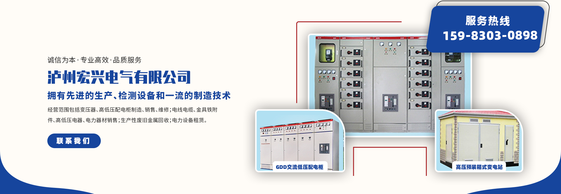 瀘州宏興電氣有限公司成立于2011年01月19日,注冊(cè)地位于四川省瀘州市龍馬潭區(qū)雙加鎮(zhèn)羅星村5組91號(hào),法定代表人為羅忠權(quán)。成立至今,已有近十年的發(fā)展歷程,目前已初成規(guī)模,建立起了一套完整的生產(chǎn)系統(tǒng)及銷售網(wǎng)絡(luò)。公司的生產(chǎn)、檢測(cè)設(shè)備和制造技術(shù)都是高品質(zhì)的,用科技實(shí)力來(lái)全面推進(jìn)信息化管理、將現(xiàn)代高科技技術(shù)融入企業(yè)生產(chǎn)經(jīng)營(yíng)全過(guò)程,以提高企業(yè)的市場(chǎng)應(yīng)變能力和生產(chǎn)力。經(jīng)營(yíng)范圍包括變壓器、高低壓配電柜制造、銷售、維修;電線電纜、金具鐵附件、高低壓電器、電力器材銷...